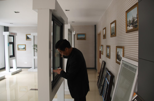 新城地產(chǎn)工程部負責(zé)人在認真研究我公司展廳的節(jié)能樣窗