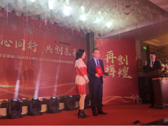 隨后,公司對陪伴金銳達多年的供應商合作伙伴、老員工以及2018年中表現(xiàn)突出的安裝班組和員工進行了表彰。之后的京劇、舞蹈、詩朗誦等精彩節(jié)目和抽獎活動助推氣氛走向高潮,整個會場充滿了熱烈、喜慶、和諧的氣氛。
